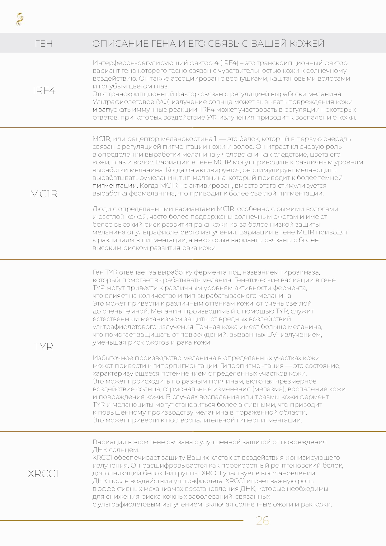 Данные отчета являются персонализированной генетикой и эффективно могут быть использованы только для конкретного человека.
